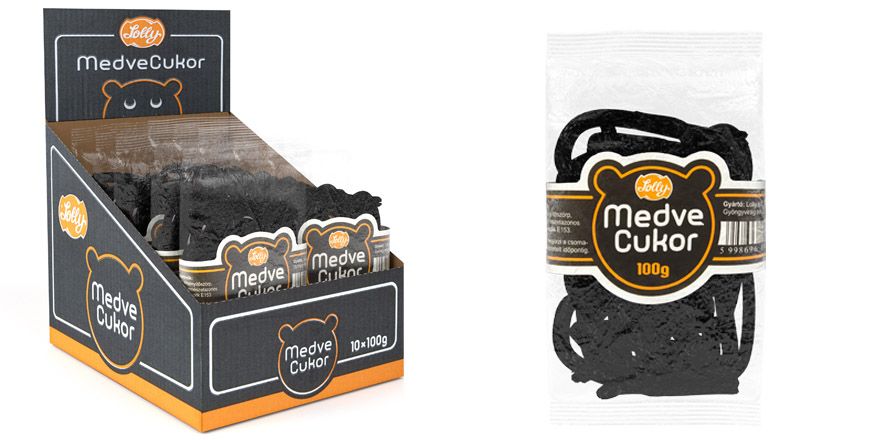 Zloženie: cukor, glukózovo-fruktózový sirup, želatína, prírodná anízová aróma, farbivo: aktívne uhlie. Môže obsahovať stopy sezamu, arašidov a sušeného mlieka!